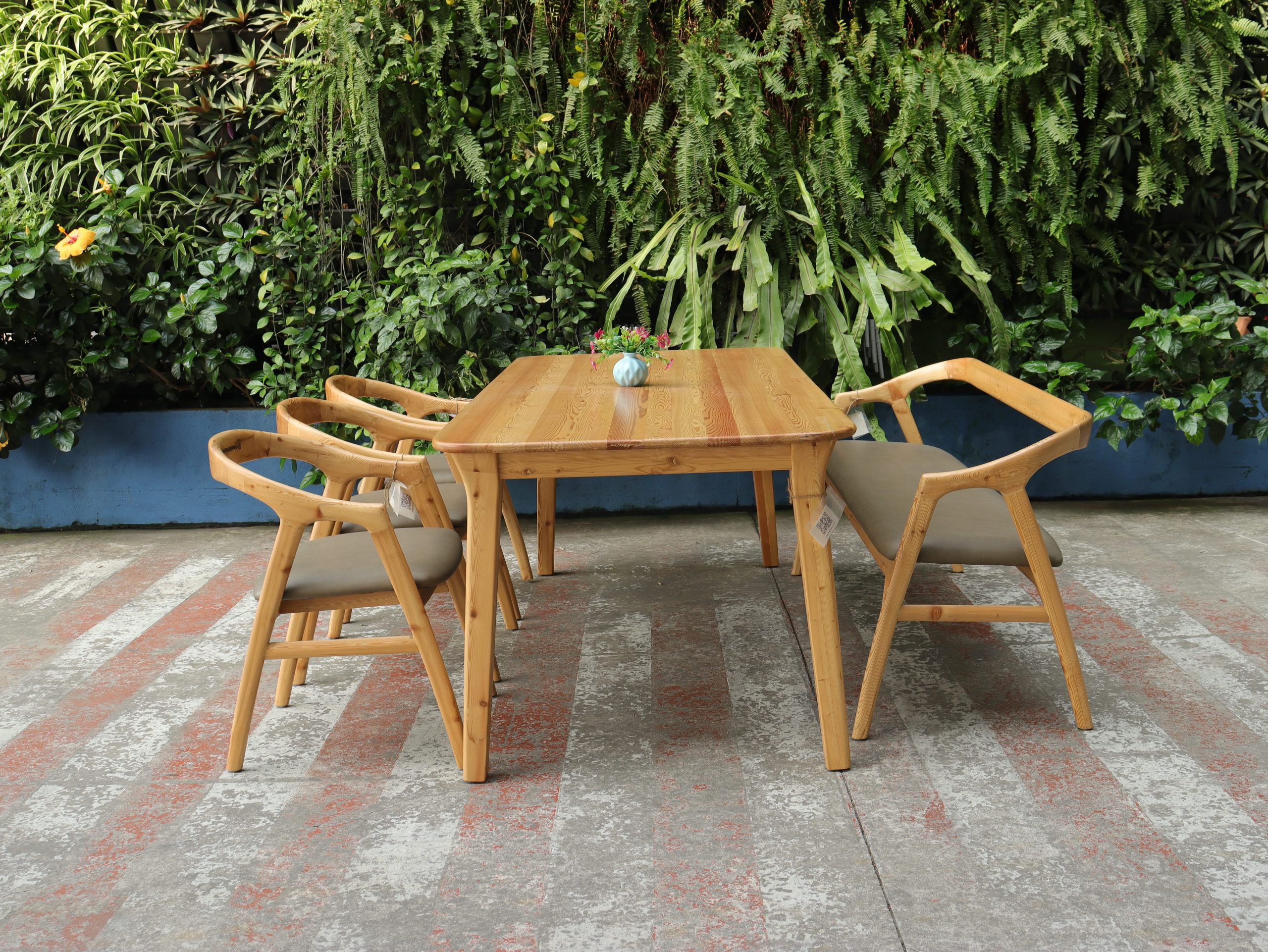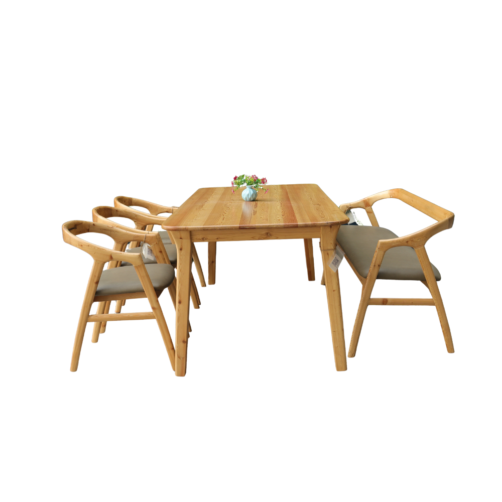 Bộ bàn ăn gỗ thông nệm xám đậm sở hữu thiết kế đơn giản, nhẹ nhàng, phù hợp với nhiều không gian phòng ăn. Sản phẩm được làm từ gỗ thông tự nhiên, trọng lượng nhẹ, thuận tiện trong quá trình sử dụng và sắp xếp.